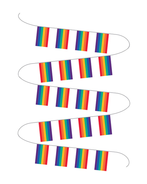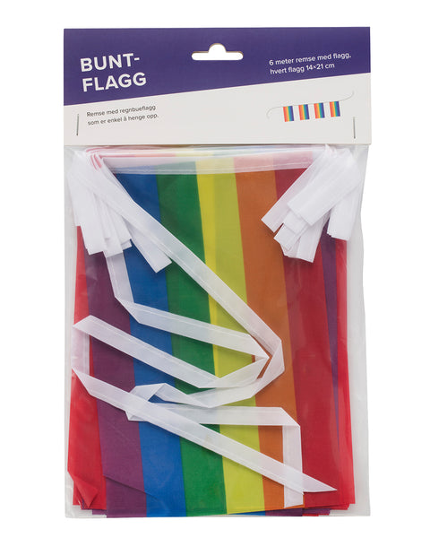 6 meter lang snor med mange små regnbueflagg festet. Perfekt for å pynte opp stuen eller verandaen.