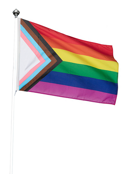 Stort Pride Progress flagg i meget høy kvalitet. Beregnet for å henge på flaggstang. Passer godt på både private og offentlig flaggstenger, enten det er i hagen, borettslaget, kommunen, en institusjon eller en bedrift.