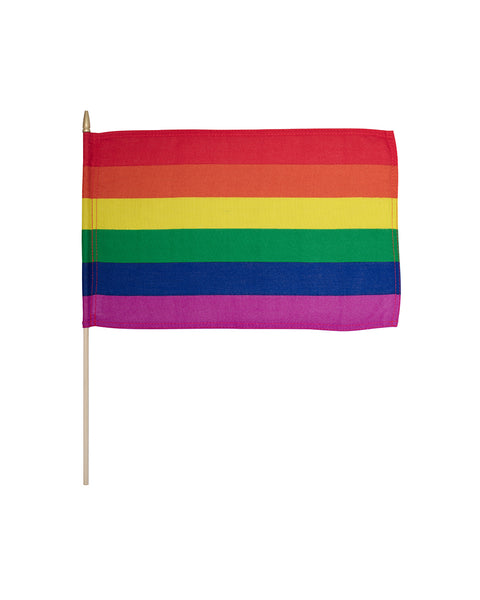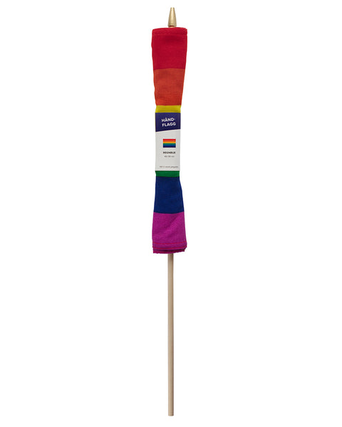 Håndflagg med regnbue flagget. Trykket på slitesterkt polyester.