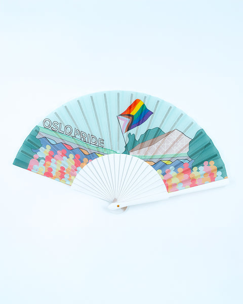 Håndvifter med trepinner med to ulike størrelser - Med designet Oslo Pride fra Kontraskjæret.