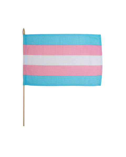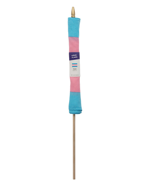 Håndflagg med transflagg. Trykket på slitesterkt polyester.